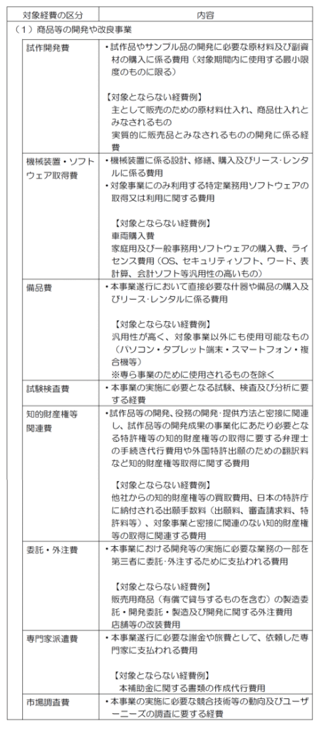 コロナ渦の補助金と比べて、補助対象経費が厳格化されています。